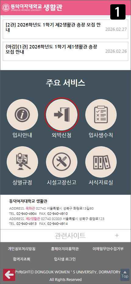 | 일반외박 | 홈페이지 신청(홈페이지 및 모바일 홈페이지에서 신청가능) ※ 신청기간, 사유를 정확히 기입 |
