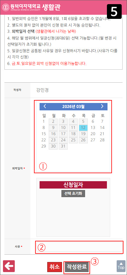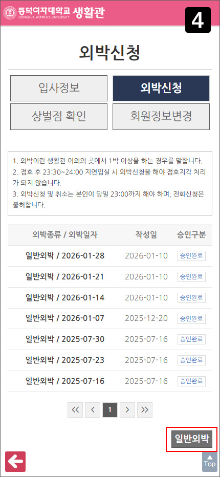 | * 외박신청을 했을 경우 | 귀사시간 제한 없음 | ||